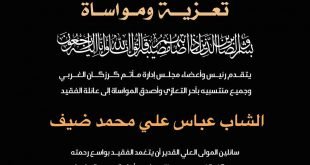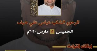 . مجالس التعزية للمرحوم الشاب عباس علي محمد ضيف من عصر اليوم الجمعة 06-03-2020 ….
