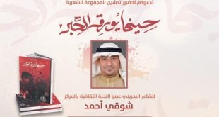 •• مركز كرزكان الثقافي والرياضي .. اللجنة الثقافية .. •• تدعوكم لحضور تدشين المجموعة الشعرية .. ” حينما يُورقُ الحِبر ” للشاعر البحريني عضو اللجنة الثقافية بالمركز شوقي أحمد بدعم وتمويل من مركز كرزكان الثقافي و الرياضي .. عن دار فراديس •• يدير الأمسية الشاعر الأستاذ علي مرهون وذلك في …