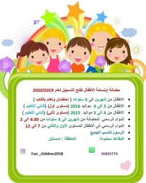 أكمل القراءة »إعلان مدفوع: حضانة وروضة ابتسامة الاطفال تفتح التسجيل لعام ٢٠١٩/٢٠٢٠ نستقبل الأ…