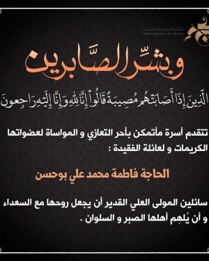 تتقدم إدارة مأتم كرزكان الغربي وجميع منتسبيه بخالص العزاء والمواساة لعائلة الفقيد المتوفى الحاج شهاب أحمد الفردان . . سائلين المولى القدير ان يتغمد الفقيد بواسع رحمته وان يسكنه فسيح جنته .. انا لله وانا اليه لراجعون . . #Bahrain #Karzakan #Matmalgharbi #مأتم_كرزكان_الغربي #كرزكان #البحرين المصدر