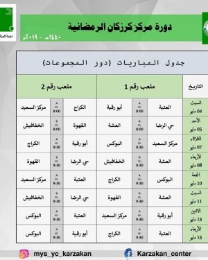 أكمل القراءة »جدول معدل لدورة مركز كرزكان الرمضانية لكرة القدم السابعة. والتي تبدأ من يوم ال…