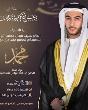أكمل القراءة »تدعوكم عائلة الحاج حبيب فردان محمد لحضور حفل عقد قران نجلهم محمد …
