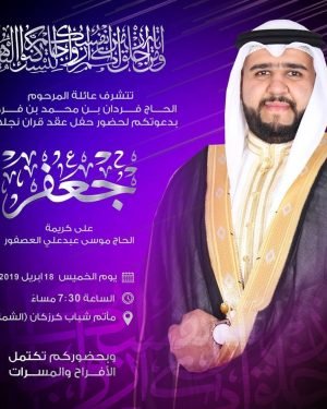 تذكير: الليلة تدعوكم عائلة المرحوم الحاج فردان محمد فردان لحضور حفل عقد قران ابنها جعفر ألف مبروك وبالرفاه والبنين #زواج_كرزكان #كرزكان #كرزكانكم #أخبار_كرزكانكم #منوعات_كرزكانكم #قريتنا #أخبار_القرية #قريتنا_الحبيبة #قرية_كرزكان #أخبار_قرية_كرزكان #قرى_البحرين #مملكة_البحرين #البحرين #بحريننا #bahrain #karzakan #karzakancom #karzakancom_news المصدر
