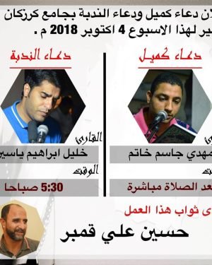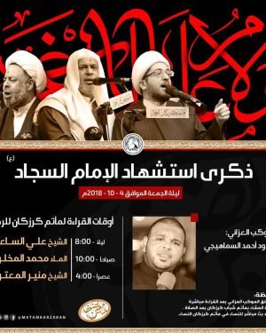 أكمل القراءة »– . . تذكير . . ۩ ﻣأﭠم ﻛرزﻛٱن .. . . . برنامج ذكرى إستشهاد الإمام السجاد (ع) ….