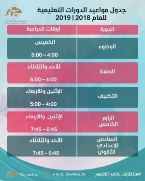 أكمل القراءة ». . تنويه: ننوه بتغيير أوقات الدروس لدورات الوضوء والصلاة والتكليف كما هو موضح…