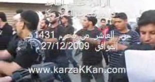 الرادود ملا عبدالله الكربلائي في موكب عزاء قرية كرزكان بمملكة البحرين يوم التاسع من المحرم 1431هـ، الموافق 26 ديسمبر 2009م. الجزء الثالث. المصدر