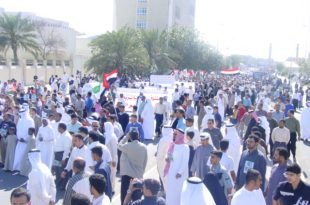 تظاهر قرابة العشرين ألفاً من المواطنين والمقيمين ضد السياسة الأميركية في المنطقة، وتهديد أميركا بضرب الشعب العراقي الشقيق، وذلك اليوم انطلاقاً من جامع الرأس رمان إلى مبنى الأمم المتحدة بالعاصمة المنامة. وقد شهدت المسيرة حرق العلم الأميركي والهتاف ضد وجود القوات الأميركية في البحرين، فيما طالب بيان المسيرة حكومة البحرين …