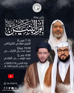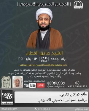 أكمل القراءة »المجلس الحسيني الاسبوعي ليلة الجمعة 13/1/2021 الشيخ صادق القطان الساعة 7:15…