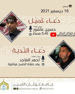۩ جۚامۘـ؏ ڪڕزڪٰٱ̍ن …•|【 دعاء كميل&دعاء الندبة 】|•… 📖 *دعاء كميل* 🗓 *٢٠٢١/١٢/١٦* ⏱٥:٤٥ مساءاً 🗣 القارئ حسين عاشور 📺 *الـبـث المباشر على قناة* *مـأتـم كـرزكـان للرجـال* http://www.youtube.com/MatamKarzakan/live 📖 *دعاء الندبة* 🗓 *٢٠٢١/١٢/١٧* ⏱ بعد صلاة الصبح مباشرة 🗣 القارئ أحمد الماجد #جامع_كرزكان_الكبير #كرزكان #كرزكانكم #أخبار_كرزكانكم #منوعات_كرزكانكم #قريتنا #أخبار_القرية #قريتنا_الحبيبة …