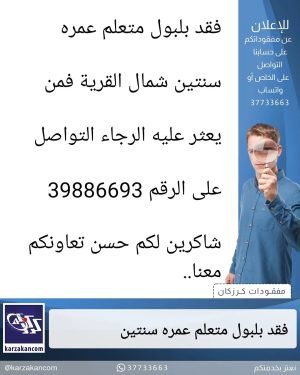 أكمل القراءة »فقد بلبول متعلم عمره سنتين شمال القرية فمن يعثر عليه الرجاء التواصل على الرقم 3…