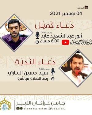 أكمل القراءة »۩ جۚامۘـ؏ ڪڕزڪٰٱ̍ن …•|【 دعاء كميل&دعاء الندبة 】|•… *دعاء كميل* *٢٠٢١/١١/٠٤* …