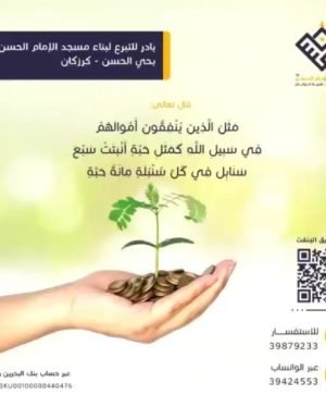 🕌 *حملة بناء مسجد الإمام الحسن عليه السلام / حي الحسن – قرية كرزكان* 🕌 . ☘️ *ثبت لك الآن قدم صدق عند مليك مقتدر* ☘️ ♎️ *إِنَّمَا يَعْمُرُ مَسَاجِدَ اللَّهِ مَنْ آمَنَ بِاللَّهِ وَالْيَوْمِ الْآخِرِ وَأَقَامَ الصَّلَاةَ وَآتَى الزَّكَاةَ وَلَمْ يَخْشَ إِلَّا اللَّهَ فَعَسَىٰ أُولَٰئِكَ أَن يَكُونُوا مِنَ …