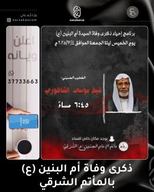 أكمل القراءة » ذكرى وفاة السيدة أم البنين (ع) بمأتم الإمام الحسين (ع) الشرقي