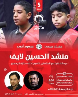 أكمل القراءة »‘ . الحلقة الخامسة من منشد الحسين لايف نجوم الحلقة: المنشد جهاد عيسى معتوق ال…
