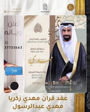 أكمل القراءة » 🌺تتشرف عائلة الحاج زكريا مهدي عبدالرسول بدعوتكم لحفل عقد قران نجله *«مهدي»*، بمأتم شباب كرزكان.