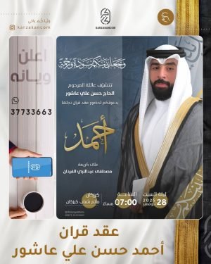 أكمل القراءة » 🌺تتشرف عائلة المرحوم الحاج حسن علي عاشور بدعوتكم لحفل عقد قران نجله *«أحمد»*، بمأتم شباب كرزكان.