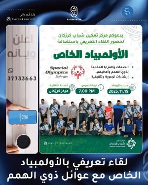 يدعو مركز تمكين شباب كرزكان عوائل ذوي الهمم لحضور اللقاء التعريفي بالأولمبياد الخاص حيث سيتعرفون على: – الخدمات والمزايا المقدمة لذوي الهمم وأهاليهم. – إرشادات توعوية وتثقيفية. ليلة الخميس 19/11/2025 الساعة 7:00 مساءً في الصالة الثقافية بالمركز @mys_yc_karzakan المصدر: إنستغرام