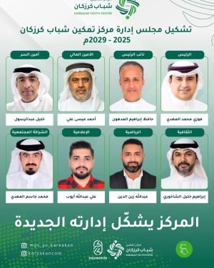 أكمل القراءة »عقــد مجلـس إدارة مركـــز تمكيـــن شبـــــاب كرزكــــان اجتمــاعـه الأول مســاء السـبـت 25 أكتوبر 2025، توافق خلاله بشأن المناصب الإدارية حسب الآلية التي أقرها النظام الأساسي، وسيعمل المجلس على استكما