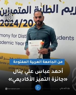 أكمل القراءة » اختارت الجامعة العربية المفتوحة ابن القرية أحمد عباس علي عباس ضمن فئة المكرمين بجائزة التميز الأكاديمي، بعد أن تفوق في دراسة التصميم الجرافيكي.