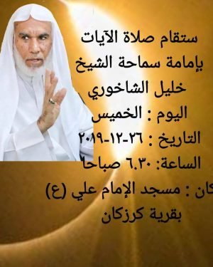 أكمل القراءة ». تقام صلاة الآيات كسوف الشمس اليوم الخميس في مسجد الإمام علي (ع) الساعة ٦:٣٠ صب…