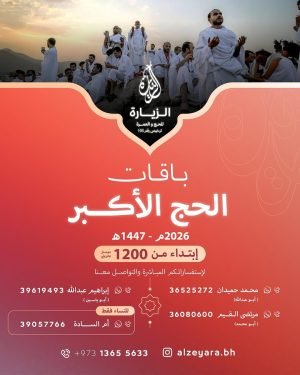 ترخيص رقم 105 *باقات الحج الأكبر 2026م ـ 1447 هـ* *الباقة الأولى:* 🚌 عن طريق الباص 🗓️ تاريخ الذهاب 21ـ05ـ2026 🗓️ تاريخ العودة 31ـ05ـ2026 ⏳ المدة: 11 يوم 💰 السعر: 1330 دينار 🕋 9 ليالي مكة المكرمة – مرور المدينة المنورة *الباقة الثانية:* 🚌 عن طريق الباص 🗓️ تاريخ الذهاب …