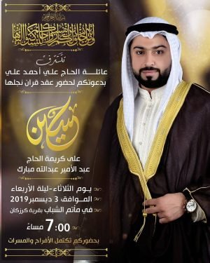 الليلة: تتشرف عائلة الحاج علي أحمد علي بدعوتكم لحضور حفل عقد قران نجلها حسين بمأتم شباب كرزكان الساعة 7:00 م #زواج #عرسان_كرزكان #دعوة_زواج #كرزكان #كرزكانكم #أخبار_كرزكانكم #منوعات_كرزكانكم #قريتنا #أخبار_القرية #قريتنا_الحبيبة #قرية_كرزكان #أخبار_قرية_كرزكان #قرى_البحرين #مملكة_البحرين #البحرين #بحريننا #bahrain #karzakan #karzakancom #karzakancom_news المصدر