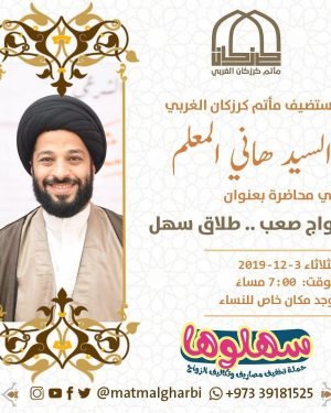 أكمل القراءة »يستضيف مأتم كرزكان الغربي السيد هاني المعلم في محاضرة بعنوان: زواج صعب .. طلاق س…