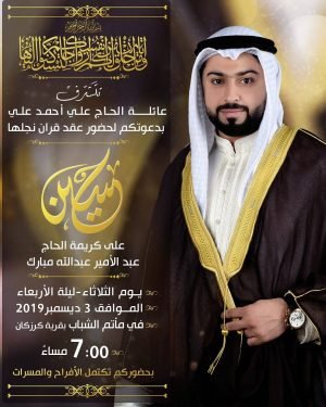تتشرف عائلة الحاج علي أحمد علي بدعوتكم لحضور حفل عقد قران نجلها حسين ليلة الأربعاء الموافق 3-12-2019 بمأتم شباب كرزكان الساعة 7:00 م #زواج #عرسان_كرزكان #دعوة_زواج #كرزكان #كرزكانكم #أخبار_كرزكانكم #منوعات_كرزكانكم #قريتنا #أخبار_القرية #قريتنا_الحبيبة #قرية_كرزكان #أخبار_قرية_كرزكان #قرى_البحرين #مملكة_البحرين #البحرين #بحريننا #bahrain #karzakan #karzakancom #karzakancom_news المصدر