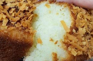 🍕🍔من سفرتنا 🍞🥯 . . كيكة جوز الهند الهشة . . المقادير : . . بيضتين – كوب سكر – قليل من الفانيلا – كوب لبن – نصف كوب زيت – ملعقة متوسطة بيكنج بودر – كوب طحين – كوب جوز هند للوجه / عسل قليل وجوز هند محمص افتح …