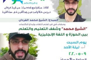 .. كونوا معنا في الحلقة الحادية عشر من برنامج وجوهـ كرزكانية غدا ليلة الأحد مع المبدع الشيخ محمد الفردان في لقاء تحت عنوان ومضات في فن تعلم اللغات وإبداع الكلمات.. “الشيخ محمد” وشغف التعليم والتعلم بين الحوزة واللغة الإنجليزية.. @alfardan_english .. السبت ليلة الأحد في تمام الساعة التاسعة مساءً …