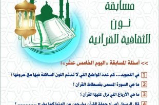 أكمل القراءة »أسئلة اليوم الرابع عشر من المسابقة الثقافية اليومية القرآنية “نون” والتي تقدمها …