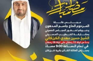 أكمل القراءة »مجلس عائلة المرحوم الحاج جاسم المدهون يدعوكم لحضور المجلس الحسيني بمشاركة الخطيب…