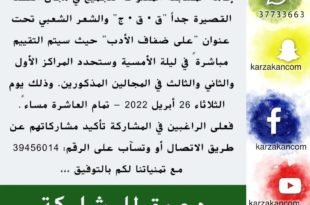 تدعوكم اللجنة الثقافية بالمركز للمشاركة في مسابقة “على ضفاف الأدب” في مجال القصة القصيرة جدا والشعر الشعبي كما هو موضح في الاعلان. للإستفسار رقم 39456014 #مركز_كرزكان #مركز_تمكين_شباب_كرزكان #مركز_كرزكان_الثقافي_والرياضي #كرزكان #البحرين #كرزكان #كرزكانكم #أخبار_كرزكانكم #منوعات_كرزكانكم #قريتنا #أخبار_القرية #قريتنا_الحبيبة #قرية_كرزكان #أخبار_قرية_كرزكان #قرى_البحرين #مملكة_البحرين #البحرين #بحريننا #bahrain #karzakan #karzakancom #karzakancom_news المصدر