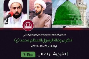 برنامج الخطابة لمأتم كرزكان الغربي في ذكرى وفاة النبي الاكرم محمد(ع) …