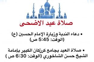 أكمل القراءة ». ستقام غدا صلاة العيد بإمامة سماحة الشيخ حسن الشاخوري في جامع كرزكان الساعة 6:3…