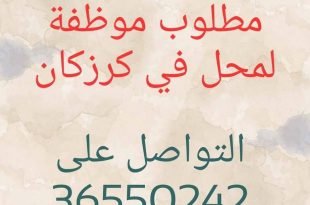 أكمل القراءة »إعلان مدفوع: مطلوب موظفة لمحل أطعمة في كرزكان التواصل من بعد الساعة الخامسة على…