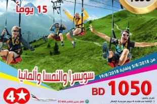 إعلان مدفوع رحلة أوربا (2): شاركنا روعة الاكتشاف!! تبدأ الحكاية من سويسرا.. حيث تأخذنا الساعة السويسرية الأشهر عالمياً في جولات سياحية فريدة من نوعها بطعم الشوكولاته السويسرية نكتشف فيها لوزيرن وأنترلاكن والريف السويسري.. نمرُّ بعدها إلى النمسا إلى زيلامسي الحالمة في أحضان الطبيعة السّاحرة، ومحطات عديدة هناك بانتظارنا.. إلى ألمانيا …