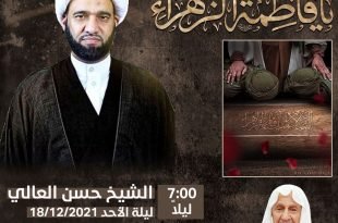 أكمل القراءة »الليالي الفاطمية – مجلس تأبين ليلة الاحد ١٨/١٢/٢٠٢١ بمشاركة الخطيب الشيخ ح…