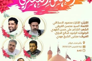 أكمل القراءة »– . . تذكير . . ۩ ﻣأﭠم ﻛرزﻛٱن .. . . . برنامج الاحتفال بمناسبة ذكرى مولد الإمام…