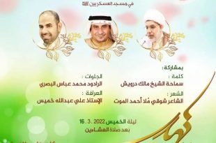 أكمل القراءة »*يقيم مسجد العسكريين عليهما السلام بمنطقة اللوزي* *احتفاله بمولد الإمام الحجة ع…