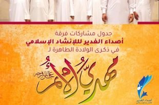 أكمل القراءة ». جدول مشاركات فرقة أصداء الغدير للإنشاد الإسلامي في ذكرى ولادة الإمام المنتظر ع…