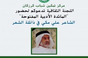 مساء اليوم،،،، تدعوكم اللجنة الثقافية بالمركز لحضور أمسيتها الثقافية “المائدة الأدبية المفتوحة(الشاعر علي مكي في ذائقة الشعر) “، وذلك مساء اليوم الأربعاء ١٦ مارس في تمام الثامنة مساء على الصالة الثقافية بالمركز. ◾مع التقيد بالاشتراطات الصحية. #مركز_كرزكان #مركز_تمكين_شباب_كرزكان #مركز_كرزكان_الثقافي_والرياضي #كرزكان #البحرين المصدر