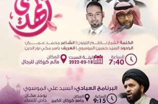 أكمل القراءة »برنامج احتفال مأتم كرزكان الغربي بمولد الإمام المنتظر(ع) العرافة:محمد عبدالله ع…