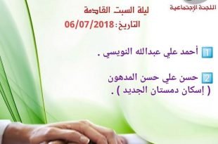 أكمل القراءة »برنامج التواصل الاجتماعي و زيارة المرضى ليلة السبت كانت هذا الاسبوع إلى الحاج حس…