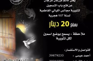 أكمل القراءة »‘ ۩ مأتم كرزكان .. «الليالي الفاطمية» يعلن مأتم كرزكان للرجال عن فتح باب الت…