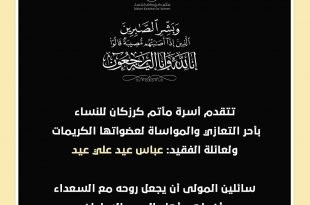 أكمل القراءة »تتقدم إدارة مأتم كرزكان الغربي وجميع منتسبيه بخالص العزاء والمواساة لعائلة الفقي…