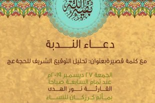 أكمل القراءة »مقطع مرئي : دعاء الندبة للقارئ الموافق ٢٠١٩/١٢/٢٧ م . …
