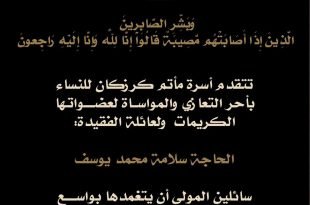 أكمل القراءة »انتقلت إلى رحمة الله تعالى ورضوانه الحاجة سلامة محمد يوسف زوجة الحاج إبراهيم فاض…