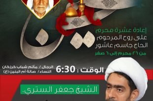 أكمل القراءة »اعلان إعادة عشرة محرم الحرام على روح المرحوم الحاج جاسم عاشور بدأ من الليلة السب…