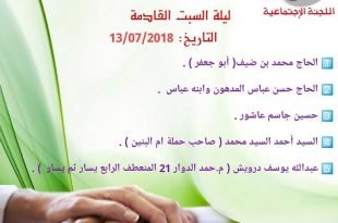 . تدعوكم اللجنة الإجتماعية في جمعية كرزكان الخيرية لزيارة المرضى وأهالي القرية الليلة السبت 13-7-2018 بعد صلاة المغرب مباشرة اللهم إشف كل مريض #كرزكان #كرزكانكم #أخبار_كرزكانكم #منوعات_كرزكانكم #قريتنا #أخبار_القرية #قريتنا_الحبيبة #قرية_كرزكان #أخبار_قرية_كرزكان #قرى_البحرين #مملكة_البحرين #البحرين #بحريننا #bahrain #karzakan #karzakancom #karzakancom_news #مرضى_كرزكان #تواصل_كرزكان المصدر